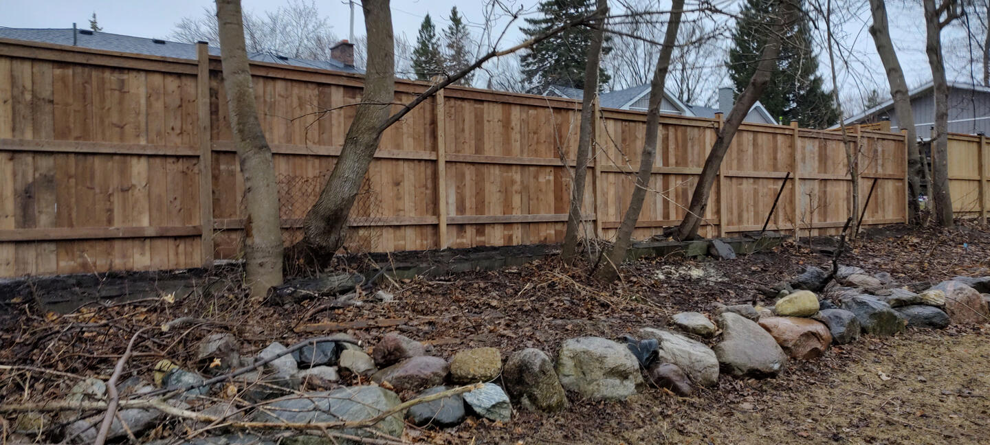 Every yard has its challenges, like rocks, roots, or even a stubborn tree. We'll find the best solution for each situation, such as framing a post around a large tree. We'll discuss all your options and make recommendations during our consultation.